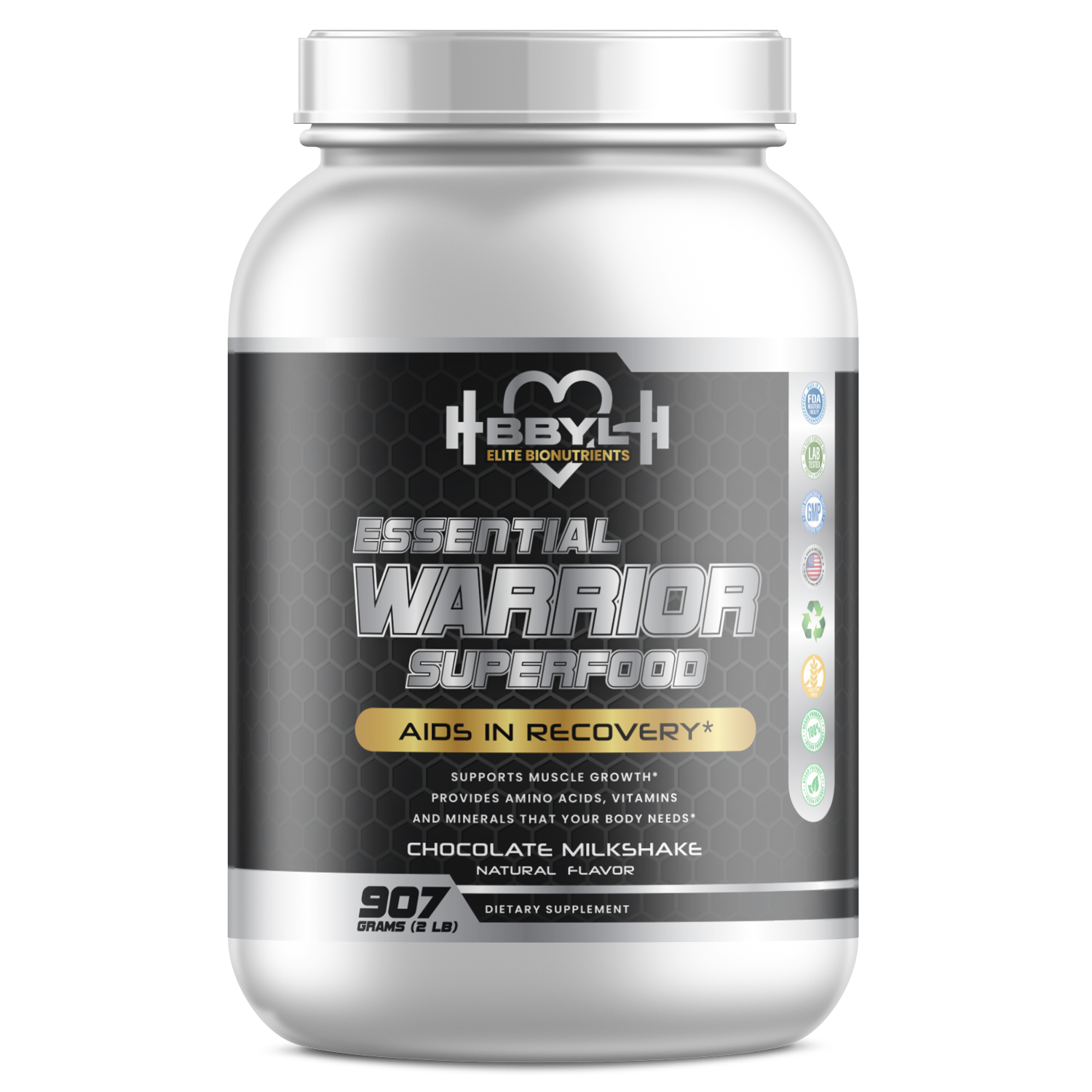 Essential Warrior Superfood is formulated to support muscle growth, immunity, digestive health, increase satiety, increase fat burning, and boost metabolic rate. Our product is synthesized utilizing the latest scientific research and formulated with high quality ingredients. Our formula provides a plant-based source of protein that contains all the essential and branched-chain amino acids with an amino acid profile similar to whey protein. Our Vegan protein contains a super fruit antioxidant blend in a delicious chocolate flavor! Our formula is third party independently tested for heavy metals, impurities, made in the USA, GMP certified, and produced in an FDA registered facility. 1% of the supplements on the market can match our world class standards. |